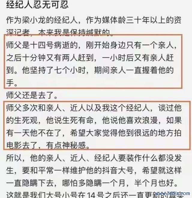 按照梁小龙的遗愿股牛网,亲友们本计划低调隐瞒他的死讯,继续维护社交账号,哪怕多隐瞒一段时间也好。
