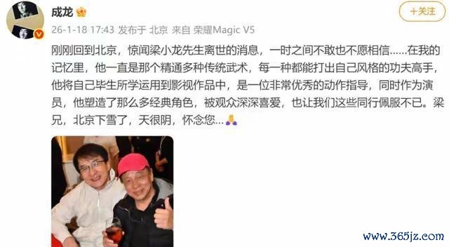 梁小龙“因病离世”的消息传开后,各界人士纷纷发文悼念。周星驰晒出旧照,写下“永远怀念梁小龙先生”;成龙发文感慨“梁兄,北京下雪了,天很阴,怀念您”;吴京也以“侠者远去,江湖失色”,表达对这位前辈的敬仰。